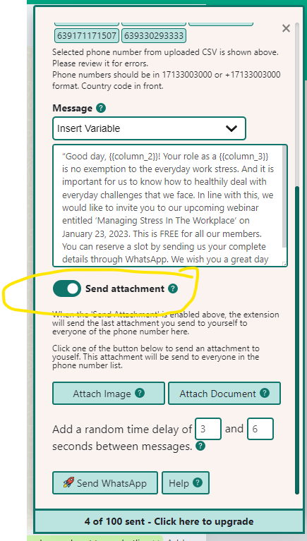 After all has been set, click the Send WhatsApp button to send your message. Wait for the processing to finish, and that’s it! You’ve successfully sent your event invitation with rocketsend.io.